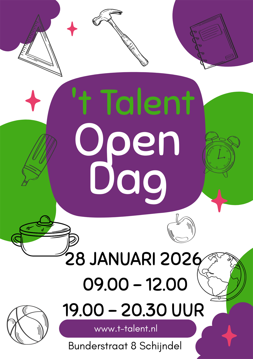 Het team van 't Talent gelooft verantwoord inclusief onderwijs voor onze leerlingen. Wij bieden veel structuur. In de ochtend staan de basisvaardigheden (taal, rekenen, spelling en lezen) centraal. In de middag is er ruimte voor bewegen, cultuur, aardrijkskunde, digitale geletterdheid, geschiedenis, natuur en techniek, creativiteit en nog veel meer. We vinden het belangrijk dat kinderen een brede blik op de wereld ontwikkelen en ontdekken waar hun talenten liggen.